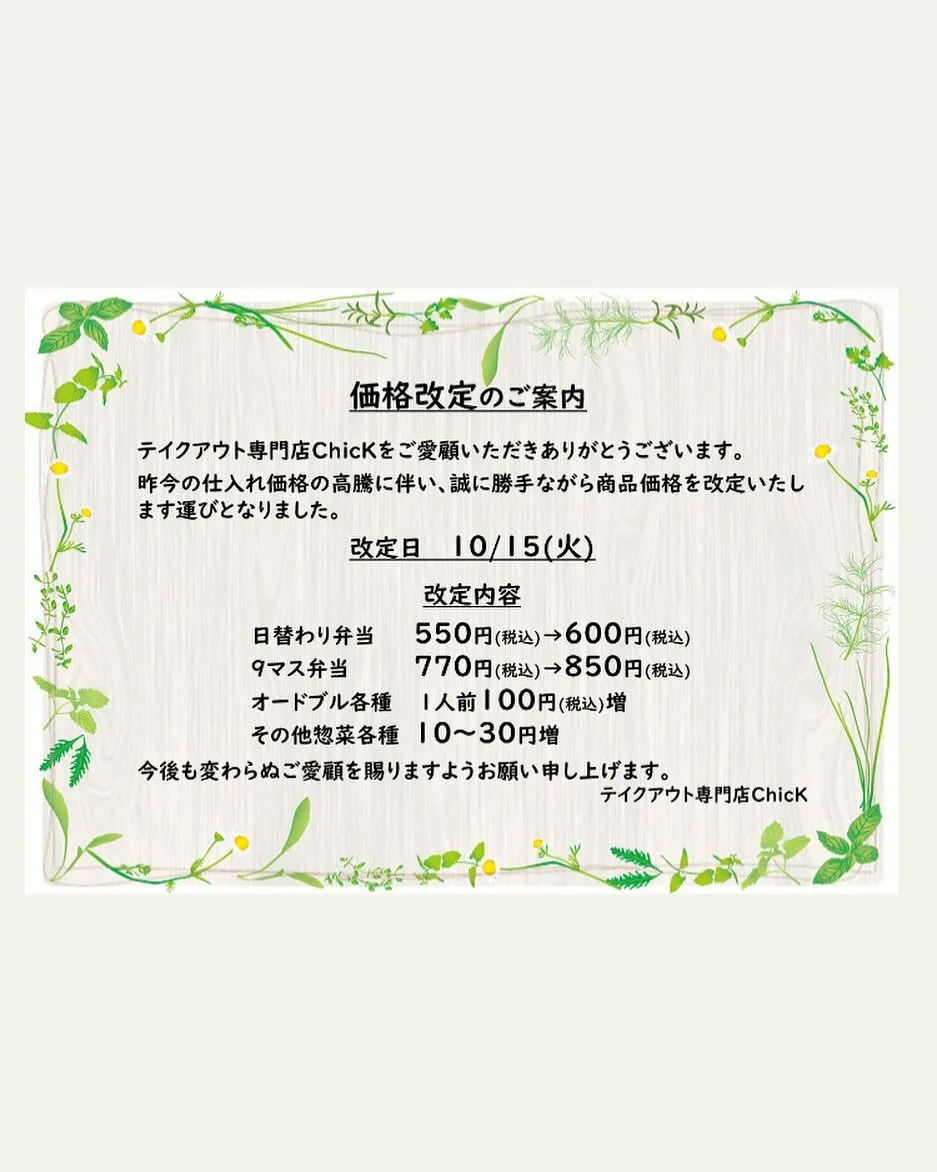 《価格改定のご案内》