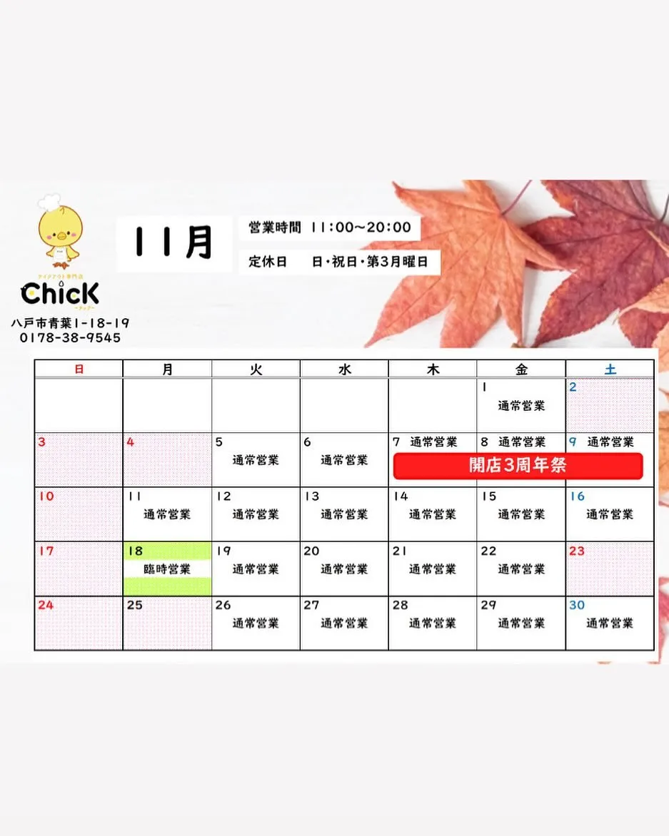 《11月の営業カレンダー》